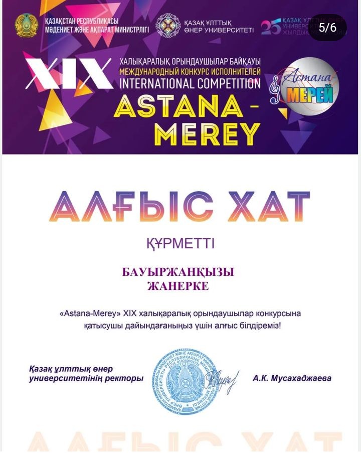 Қазақстан Республикасы Мәдениет және Ақпарат Министрлігі Қазақ Ұлттық Университетінің 25 жылдық Мерейтойы XIX Халықаралық орындаушылар байқауы