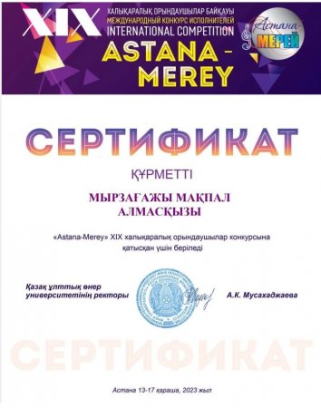 » Қазақстан Республикасы Мәдениет және Ақпарат Министрлігі Қазақ Ұлттық Университетінің 25 жылдық Мерейтойы XIX Халықаралық орындаушылар байқауы